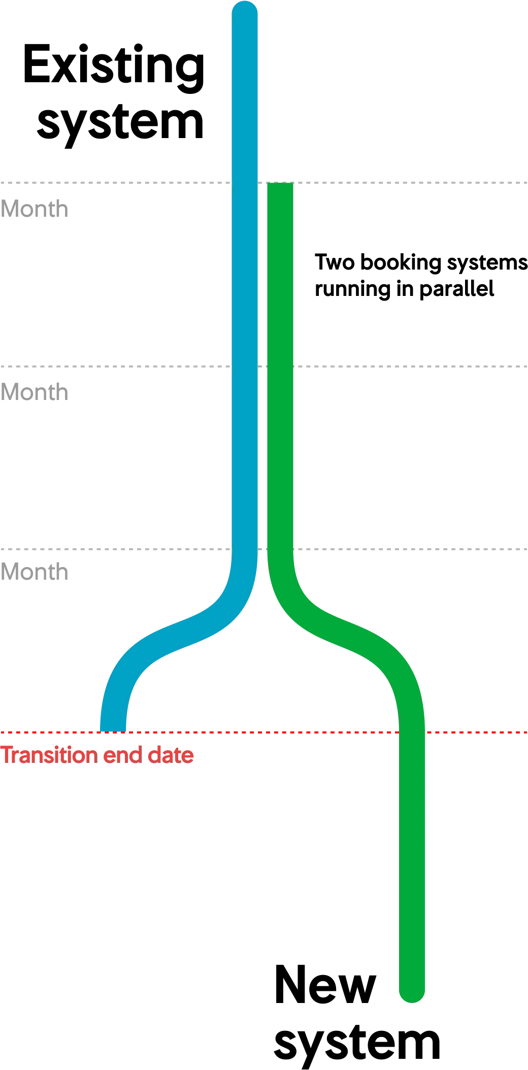 The real challenge was handling the impossible scenarios: rebooking old tickets for new system dates, return trips that spanned both systems. We had to be brutally honest - users would need to cancel and rebook separately.