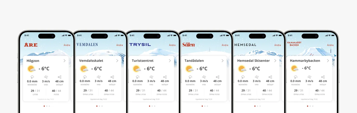 Adding the Mountain for each destination made it both functional and beautiful - Instead of just reading 'Åre' or 'Sälen', users could instantly identify their resort while feeling the excitement of the mountain experience.